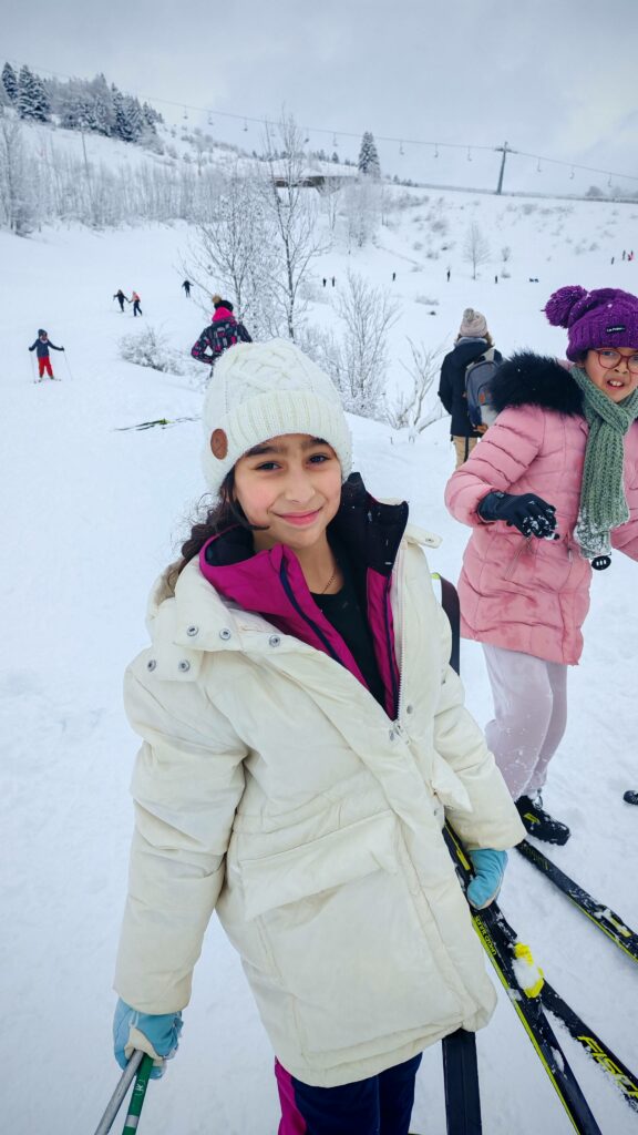 Hier j’ai fait du ski c’était trop bien au début c’est dur j’arrivais pas à mettre les fixations mais c’était magnifique . Après avec madame Laffont on a fait une descente spectaculaire pour moi c’était facile pour moi après je suis tombée 2,3 fois mais après je suis tombée sur Imane mais je lui ai dit pardon . et après avec Sofia on a fait la descente ensemble et on n’est pas tombé mais à la fin Sofia est tombée .